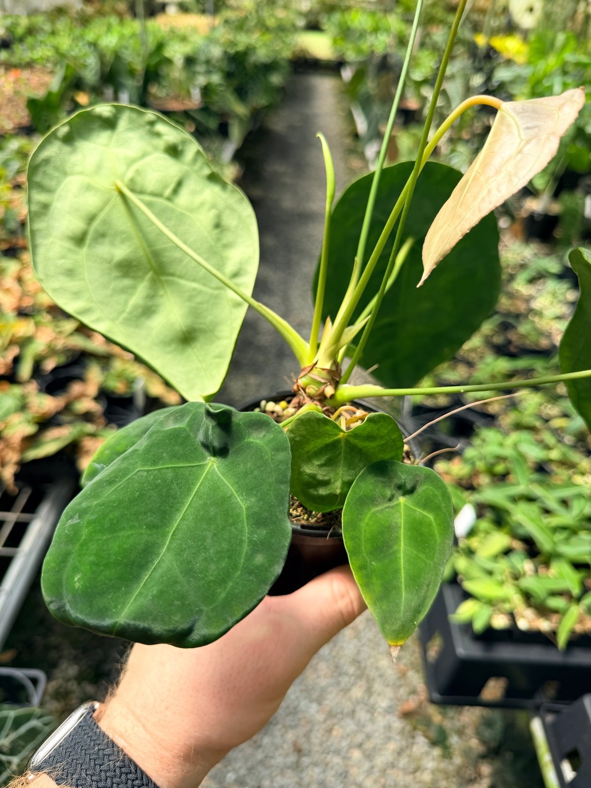 Anthurium forgetii x NOID is a rare and mysterious hybrid that blends the elegant, round-lobed form of forgetii with unknown genetics, resulting in a truly one-of-a-kind plant. Each specimen displays its own variation in leaf shape, texture, and vein contrast, making this cross an exciting addition for serious aroid enthusiasts.