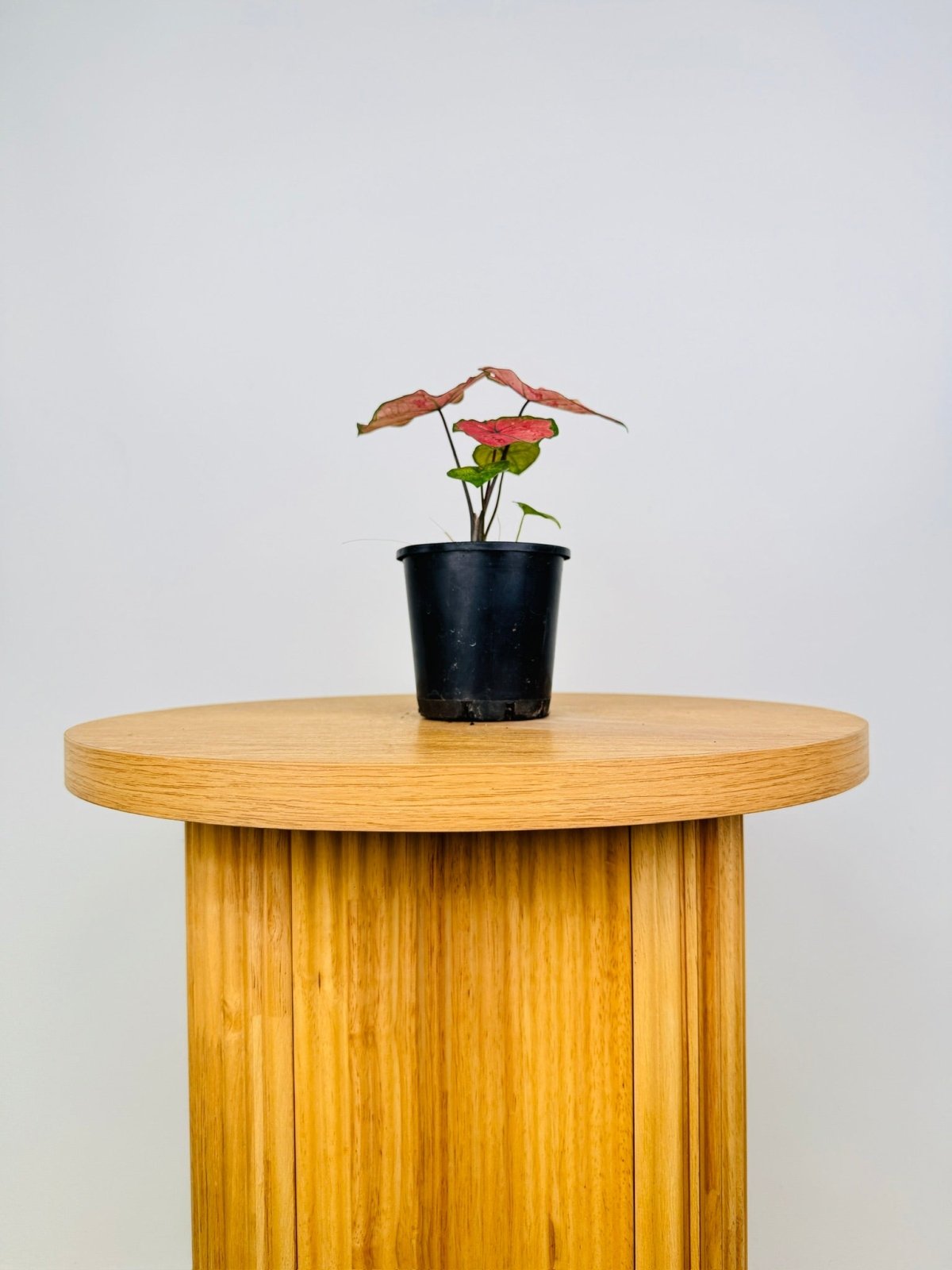 Caladium bicolor ‘The Scarlet Girl’ is a bold and vibrant variety that lives up to its name, with dazzling pink leaves. Its rich tropical tones make it an instant statement piece, perfect for adding colour and warmth to shaded gardens or bright indoor spaces.