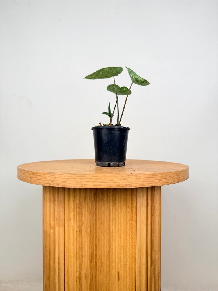 Caladium bicolor ‘White Camouflage’ is a striking foliage variety showcasing creamy white leaves splashed with subtle green veining and speckled patterning. Its soft tones and bold contrast make it a standout for bright indoor spaces or shaded tropical gardens, offering a cool, elegant twist to any collection.