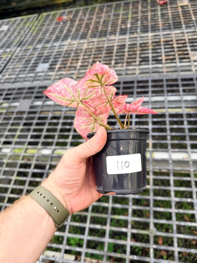 Caladium bicolor NOID is a timeless foliage plant valued for its large, eye-catching leaves and bold tropical presence. Grown primarily for its dramatic leaf shape and texture, this unnamed form offers classic Caladium appeal with natural variation from plant to plant.