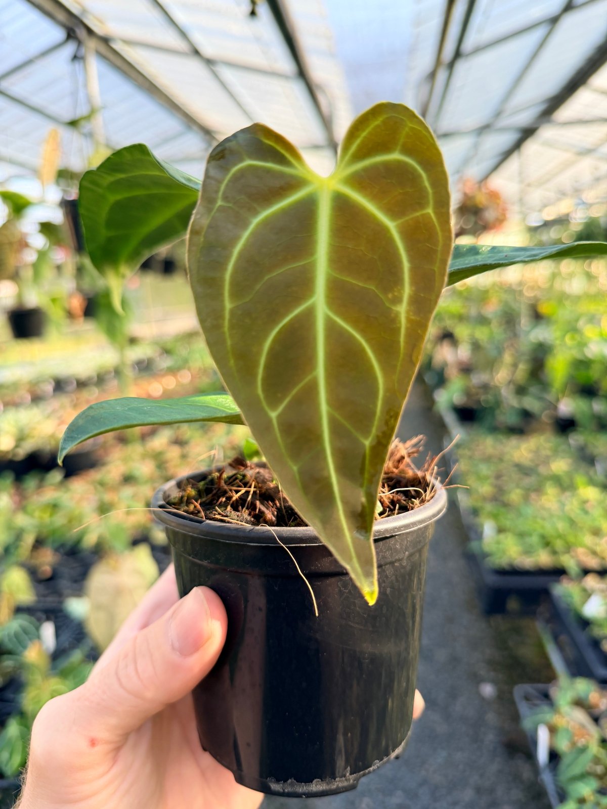 Anthurium regale is one of the most impressive foliage plants in the aroid world, famed for its enormous, velvety leaves and striking silver venation. These handpicked specimens are chosen for their unique character and strong growth, making them a standout feature for any serious collection.