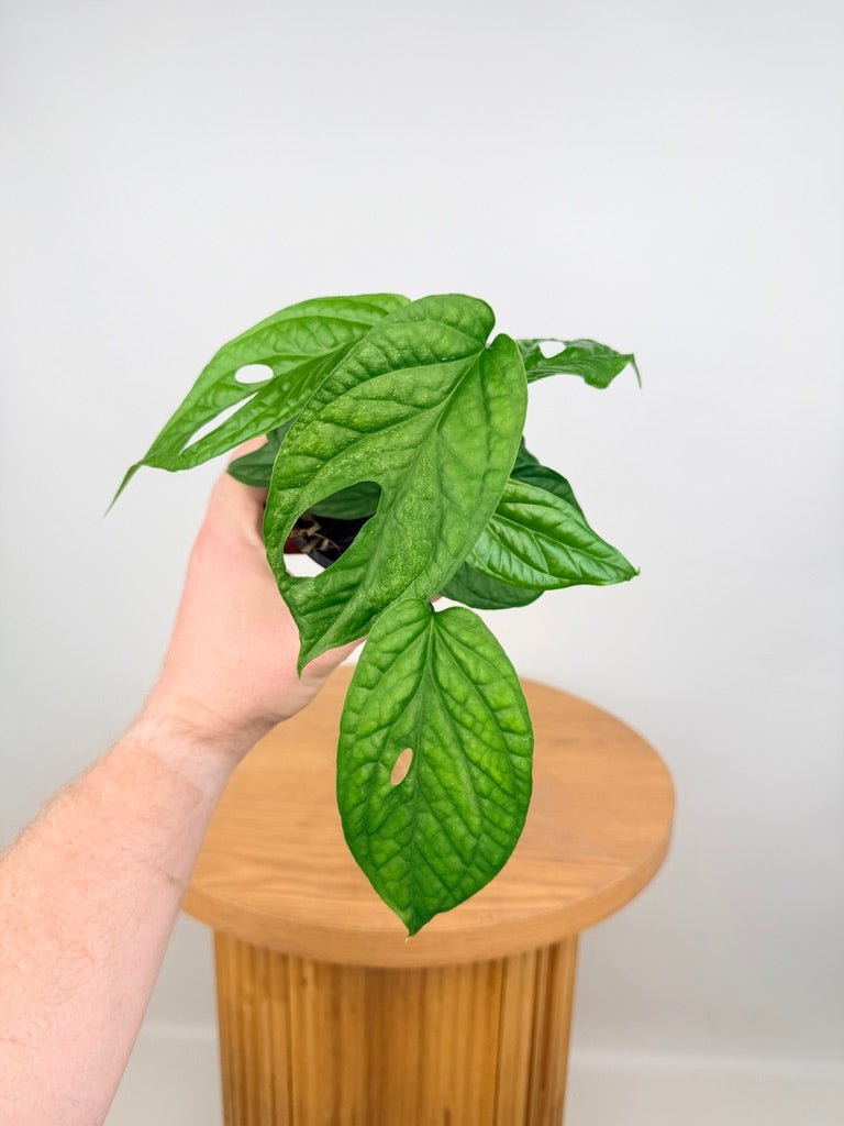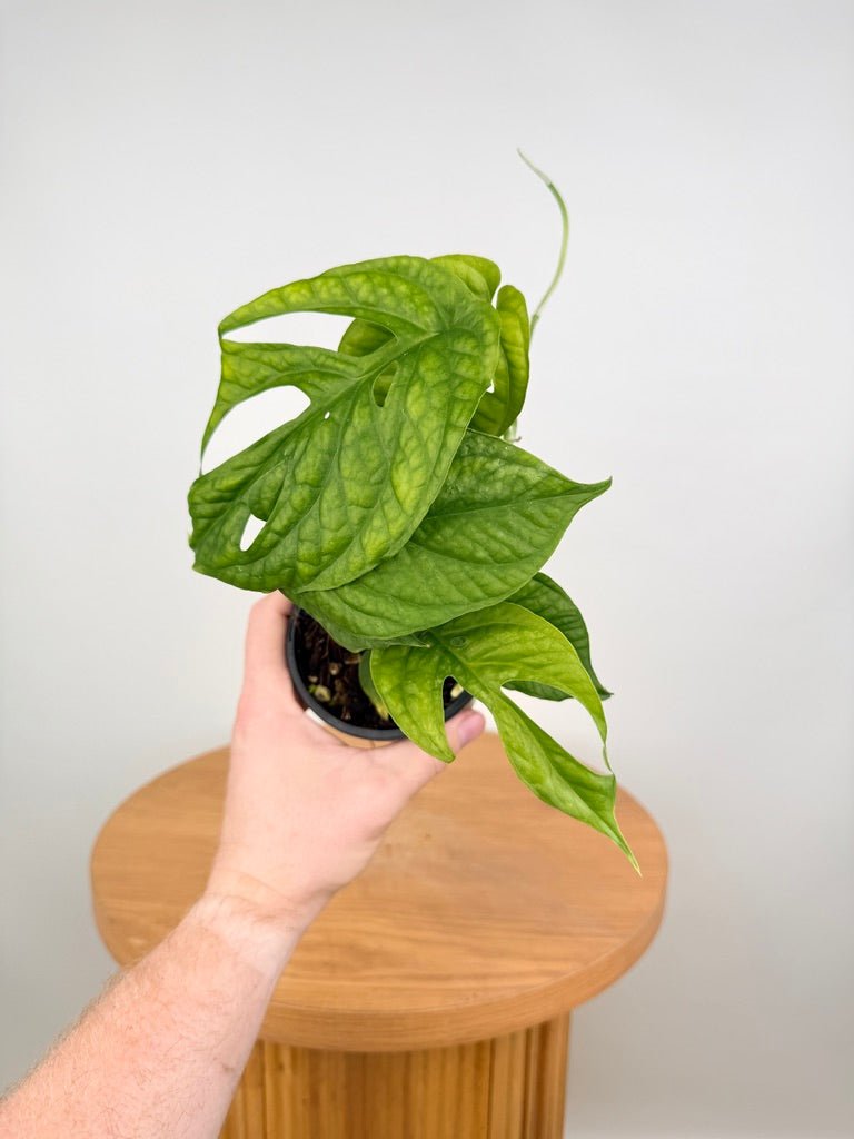 Amydrium medium is a fast-growing tropical climber prized for its bold foliage and strong vertical growth habit, making it a rewarding choice for collectors who enjoy watching plants mature and transform with support.