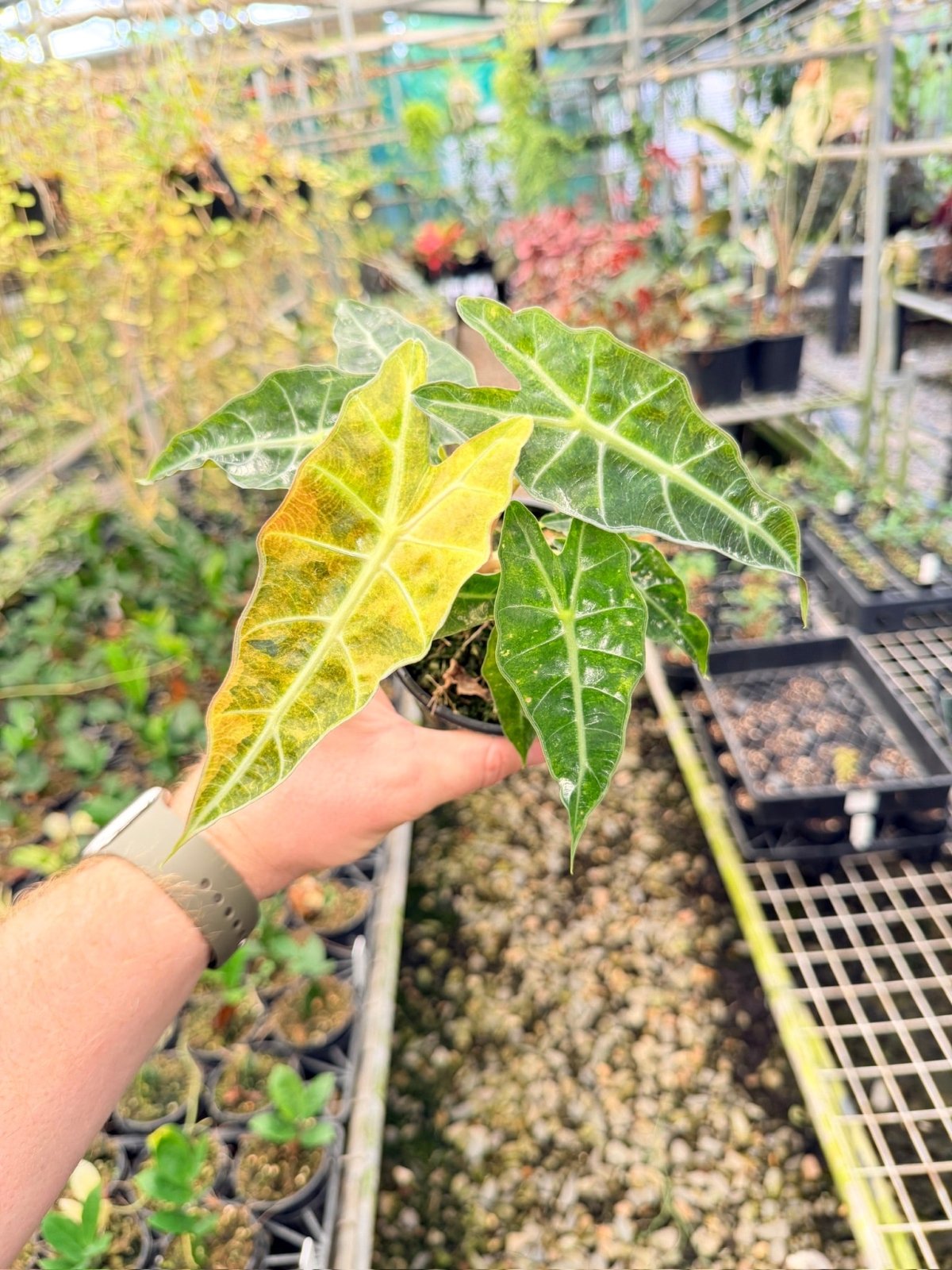 ✔️ Iconic Alocasia leaf shape with sharp veins and glossy texture